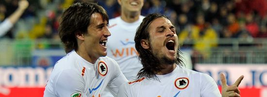 Рома провела далеко не лучший матч в чемпионате, но, как говорится, три очка не пахнут. Теперь у подопечных Луиса Энрике 14 пунктов - столько же у Наполи и Катаньи. Но Партенопеи завтра принимают Ювентус, Слоны едут в Милан - очковые потери нынешних конкурентов джалло-росси более чем вероятны.
