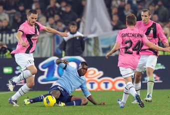 Ювентус ответил куда более опасным выпадом. Экс-игрок Лацио Лихтштайнер навесил с правого фланга, Маркизио выиграл верховую борьбу, но направил мяч над перекладиной. Удар Клаудио стал началом серии довольно опасных атак бьянко-нери. Пепе простреливал - Диаките помешал с ходу пробить Матри и выбил мяч на угловой. После розыгрыша корнера и навеса Пирло Алессандро головой скинул мяч в центр, с лета пробил Бонуччи - выше ворот. Кульминацией периода активности гостей стал штрафной в исполнении Андреа Пирло. Полузащитник сборной Италии отлично пробил метров с 30-ти, Маркетти не менее эффектно парировал мяч, но прямо на Лихтштайнера. А вот Штефан перенервничал - защитник не сумел попасть в пустой угол.