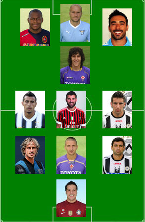Жулио Сезар (Интер) (1) - Гамберини (Фиорентина) (1), Манфредини (Аталанта) (1), Данило (Удинезе) (1) - Видаль (Ювентус) (2), Ночерино (Милан) (3), Исла (Удинезе) (1) - Йоветич (Фиорентина) - Ибарбо (Кальяри) (1), Рокки (Лацио) (1), Лавесси (Наполи) (2)