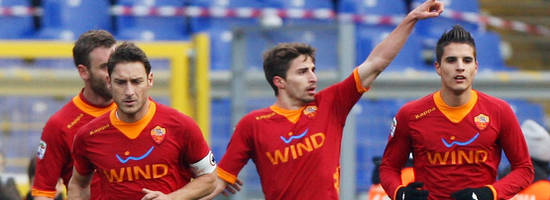 Который он достал в воскресенье на Стадио Олимпико в матче с Интером. Тут все было абсолютно иначе - зашита не давала сбоев, в атаке все было проделано на высшем уровне. Второй матч кряду нерадзурри пропустили четыре гола, но на сей раз вместо покера/каре Диего Милито скромно промолчал, а никто из его партнеров не смог взять на себя функции бомбардира. Рома победила 4:0, и уже может присматриваться к четвертом месту. От него пять очков, но у Волков есть еще доигровка поединка против Катаньи.