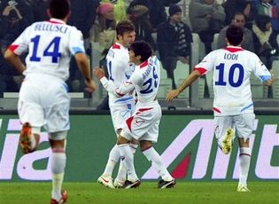 В играх же с Кальяри, Кьево, Болоньей, где Катанья обязана была брать очки, Слоны проигрывали. И в матче, к примеру, с сардами Слоны очень неуверенно и неактивно начинали, как для хозяев поля, лишь на 10-й минуты первый раз подошли к штрафной соперника. Да и вообще атаки были более медлительные, явно не хватало той здоровой доли азарта и риска в передачах и комбинациях. Катанье было очень трудно преодолевать эшелонированную оборону соперника, в итоге образовывался огромный разрыв между линиями, хромал переход из обороны в атаку. При этом оказалось, что когда соперник держит Слонов в напряжении, то в и обороне они играют явно сконцентрированнее. Из-за дурацкой ошибки красно-голубые пропустили необязательный гол и так и не сумели ничего поделать – более того, к концу матча даже скромный и доселе серенький Кальяри осмелел и даже почаще и острее ходил в атаку… Возможно, не будь таких странных потерь очков – и Катанья бы оставалась как минимум на свое 8-м месте, которое занимала большую часть чемпионата, и не скатилась бы на
