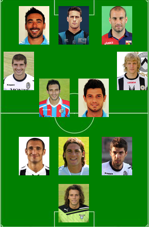 Маркетти (Лацио) (2) - Кьеллини (Ювентус), Стендардо (Аталанта) (1), Россеттини (Сиена) (3) - Баста (Удинезе) (1), Дземаили (Наполи) (1), Лоди (Катанья) (4), Бриенца (Сиена) (1) - Паласио (Дженоа) (3), Денис (Аталанта) (4), Лавесси (Наполи) (3)