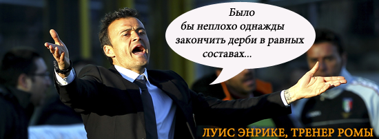 "Лацио - сильнее как команда", - заявил после матча Даниэле Де Росси, и с ним сложно не согласиться. Даже Лионель Скалони и Хавьер Гарридо - игроки далеко не самого высокого уровня, в дерби смотрелись очень неплохо и брали если не игровыми качествами, но банальным упорством. В команде Реи играло одиннадцать бойцов, у Ромы же таких нашлось три-четыре, а так любимый Энрике "барселонский футбол" в этом случае был неуместен. Орлам незачем было рисковать, не было необходимости большими силами идти вперед, они грамотно смогли выждать момент и не допустить оплошностей у своих ворот. Возможно, для нейтрального зрителя это дерби и не стало праздником футбола, но что поделать - Лацио сейчас решает серьезные задачи, которые не всегда позволяют играть на публику.