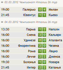 В отчетном туре лидеры чемпионата играли с неудобными для себя соперниками, однако исход поединков получился разным. Милан впервые с 2006-го года сумел победить на Ренцо Барбера, а Ювентус четвертый кряду матч с Кьево завершил вничью. Наконец-то забил и взял очки Интер - нерадзурри с боями не дали обыграть себя Катанье. Римское дерби прошло привычно для нынешнего сезона - не обошлось без удалений, а исходом встречи стала победа Лацио. Удинезе оступился на Аталанте, и к фриульцам вплотную подошел Наполи, взявший три очка в Парме. Фиорентина прервала неудачную серию, забив два безответных гола Чезене, а Болонья и Сиена добились важных результатов с точки зрения борьбы за выживание. Об этом и не только - в нашем обзоре тура.