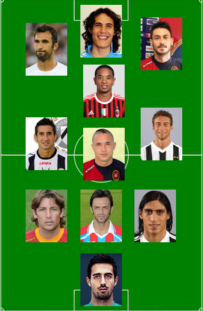 Консильи (Аталанта) (1) - Касерес (Ювентус) (1), Хайнце (Рома) (6), Легротталье (Катанья) (1) - Наингголан (Кальяри) (2), Пинци (Удинезе) (1), Маркизио (Ювентус) (4) - Эмануэльсон (Милан) (1) - Вучинич (Ювентус) (1), Пинилья (Кальяри) (2), Кавани (Наполи) (4)
