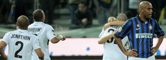 Хотя ведь и не скажешь, что у Интера не было шансов избежать поражения. Были. Причем, немалые. Очков гостям стоили провалы в обороне, два из которых произошли в течение какой-то пары минут. В итоге игроки Пармы без помех выскакивала на ворота Жулио Сезара, а уже отправить в них мяч было делом техники. А вот нерадзурри свои моменты не использовали - Паццини и Сарате с выгодных позиций пробили мимо, несколько раз ярко в игру вступил Паварини, после удара Милито мяч с линии ворот вынес Лукарелли.