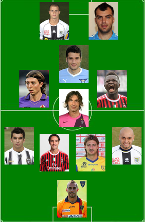 Бенасси (Лечче) (5) - Джонатан (Парма) (1), Неста (Милан) (3), Ачерби (Кьево) (3), Росси (Сиена) (1) - Мунтари (Милан) (3), Монтоливо (Фиорентина) (1), Пирло (Ювентус) (7) - Кандрева (Лацио) (2) - Джовинко (Парма) (5), Пандев (Наполи) (2)