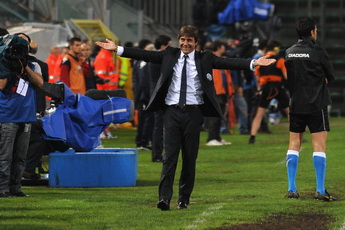 В последние минуты отчетной встречи интереснее было наблюдать за эмоциями Антонио Конте, чем за событиями, происходившими на поле. Человек, который за один сезон возродил Юве, не мог скрывать свою радость, когда из Милана приходили известия о третьем и четвертом голах Интера. Антонио заводил публику на стадионе в Триесте, энергично размахивая руками, переходил с шага на трусцу и обнимался с членами тренерского штаба.