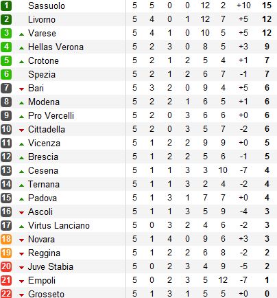 После пяти матчей Сассуоло единолично возглавил турнирную таблицу.