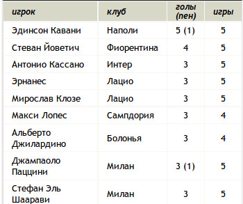 В пятом туре Серии А 11-метровые удары не реализовали Эдинсон Кавани и Марко Боррьелло (хотя Марко своего все же добился и второй пенальти в ворота Пармы реализовал). Таким образом, в общем за стартовые пять джорнат из 23-х назначенных пенальти реализовано было всего 12, то есть 52%.