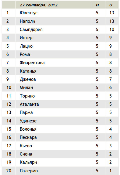 В пятом туре итальянской Серии А Ювентус потерял два очка во Флоренции (а мог потерять и все три), а Наполи обыграл Лацио и догнал бьянконери в турнирной таблице. Миланские команды синхронно победили, благодаря чему давление на Андреа Страмаччони, а главное, на Массимилиано Аллегри должно хоть немного ослабеть. Зденек Земан и Чиро Феррара разошлись миром, чему первый, в отличие от второго, вряд ли может порадоваться. Новый алленаторе Палермо Джан Пьеро Гасперини снова проиграл, зато Пескара впервые победила в Серии А.