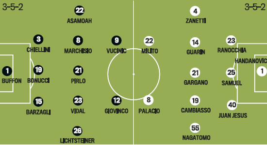 Что интересно, у обеих команд нет проблем с составом. У Ювентуса в лазарете Симоне Пепе, в нынешнем сезоне не играющий важной роли в команде - а вот Артуро Видаль уже отбыл дисквалификацию. Интер привычно выйдет