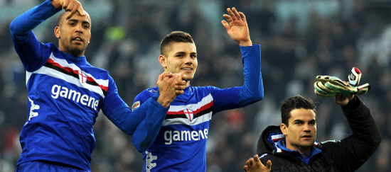 С очень неожиданных домашних поражений начали новый год Ювентус и Фиорентина. Для Старой Синьоры все начиналось как нельзя лучше - Себастьян Джовинко реализовал пенальти, а вскоре после этого генуэзцы остались в меньшинстве из-за второй желтой карточки Гаэтано Берарди. Но, как ни странно, после этого туринцы начали упускать инициативу из рук и в итоге доигрались до поражения. Два гола 19-летнего нападающего Сампдории Мауро Икарди оставили бьянконери без очков. Наставник блучеркьяти Делио Росси после финального свистка радовался, как дитя. Новый год для него начался как нельзя лучше.
