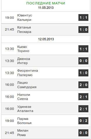В последнем туре Милан едет в гости к прощающейся с Серией А Сиене, и россонери для третьего места может хватить даже ничьей, если Фиалки не слишком крупно победят Пескару. У Фиорентины шансов чертовски мало, но все-таки интрига дожила до последней джорнаты. Кроме того, Виола в 37-м туре обеспечила себе четвертое место и точно сыграет в следующем сезоне в еврокубках.