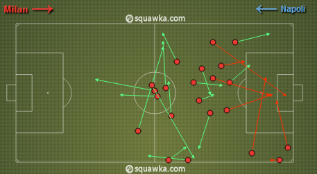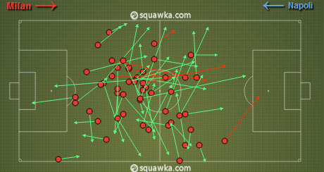 Милан выдал лучший матч нынешнего чемпионата, если говорить об атакующем параметре (13 после 11, 11, 10 соответственно) и проценте атакующих передач (2,9 после 2, 2,2 и 1,9). Что интересно, наибольшее количество обостряющих пасов в составе Аллегри отдал Алессандро Матри, которого принято ассоциировать с классическим центральным нападающим, мало заботящимся о подыгрыше партнерам. А вот Марио Балотелли привычно тянул одеяло на себя, и практически всего его передачи в штрафную Наполи вышли неточными.