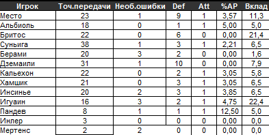 Для сравнения также приводим вам полную раскладку по игрокам Милана и Наполи: