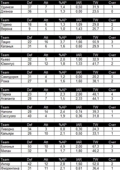 вторая часть). После каждого тура итальянской Серии А мы проводим анализ матчей на основе параметров, которые не видны невооруженному глазу.