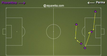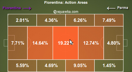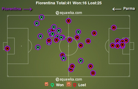 Фиалкам действительно непривычно тяжело давались эффективные комбинации в атаке, потому им часто приходилось завершать свои атакующие действия подачами в штрафную. Однако всего лишь семь из 34 подач Фиорентины были точны. В данном случае необходимо отметить игру центральных защитников Пармы — они выиграли шесть из семи верховых дуэлей в своей штрафной. Впрочем, нельзя не вспомнить и об отсутствии травмированного нападающего Фиорентины Марио Гомеса. Будь немец здоров, он наверняка сыграл бы против Пармы, и тогда эффективность кроссов Виолы точно была бы выше.