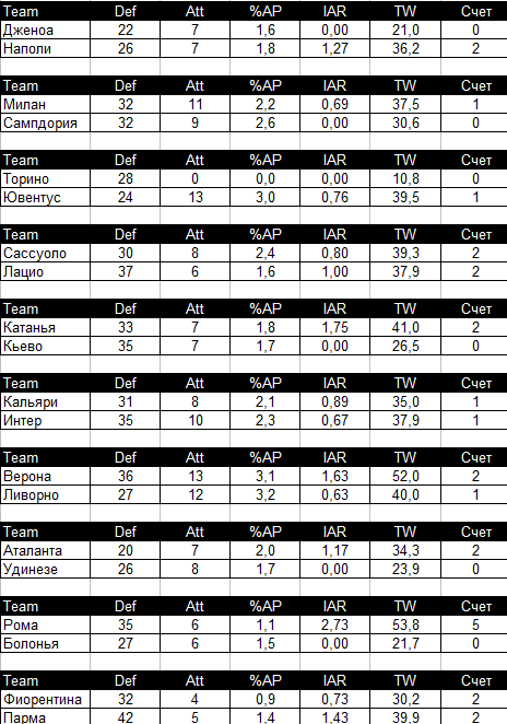 вторая часть). После каждого тура итальянской Серии А мы проводим анализ матчей на основе параметров, которые не видны невооруженному глазу.