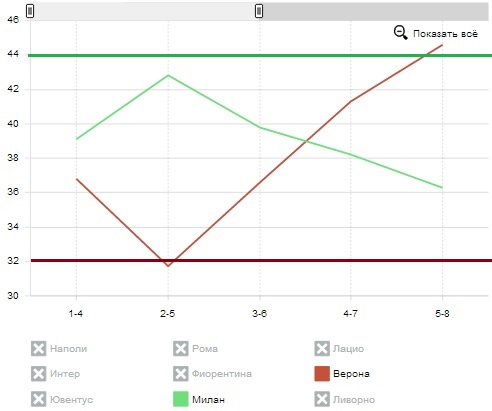 Графики рейтингов эффективности для остальных команд Серии А можно просмотреть перейдя по следующей