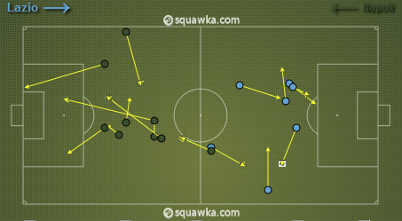 Кроме того, у Лацио ни одна обостряющая передача не прошла напрямую в штрафную, тогда как у Наполи таких пасов было три.