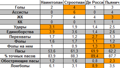Из приведенной статистики можно сделать несколько четких выводов. Наингголан – фактурный цепкий игрок, который хорош в борьбе, его сложно обыграть один в один. В нынешнем чемпионате по количеству выигранных единоборств Раджа занимает пятое место среди полузащитников после Аллана, Артуро Видаля, Марко Пароло и Франческо Маньянелли. По количеству перехватов среди основных хавбеков Ромы он уступает лишь Даниэле Де Росси, что вполне объяснимо – Кевин Строотман и Миралем Пьянич больше нацелены на атаку.