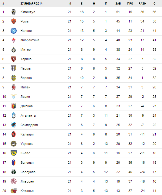 Рома добила соперника с сомнительного пенальти, который реализовал сыгравший 15 минут Франческо Тотти. По словам Руди Гарсии, его команда выиграла бы и без этого 11-метрового, потому решение арбитра не повлияло на исход матча. Что ж, в Вероне, наверное, думают по-другому. Парма и Торино уже догнали Эллас, а Милан и Лацио находятся всего в четырех очках.