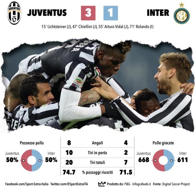 Три гола Наполи, три гола Роме, три гола Интеру. Дома Ювентус старается действовать стабильно. Очередное дерби Италии вполне могло завершиться разгромом, но Старая Синьора позволила Интеру сохранить лицо. Подробнее о матче читайте в