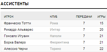 - Процент точных передач: Рома (86,8%), Ювентус (86,4%), Фиорентина (86,2%)