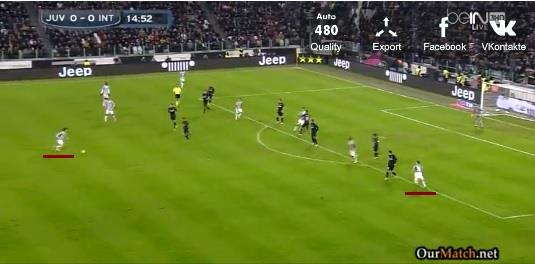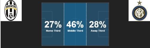 Несмотря на то, что игровые события протекали, в основном, в средней трети и существенной разницы во владении не наблюдалось (53% против 47% в пользу хозяев), Ювентус создал гораздо больше моментов для взятия ворот. Счет по ударам 20-7 в пользу Юве, причем Интер попал в створ всего дважды, а туринцы – десять раз.
