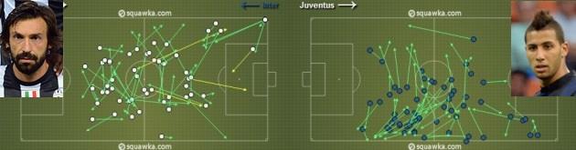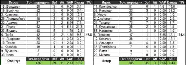 У Юве ожидаемо больше всех пасовал Пирло. Ниже приведена сравнительная статистика: