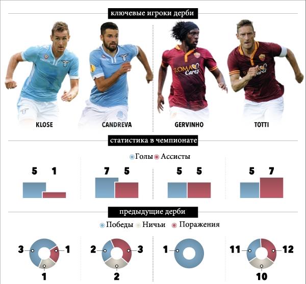 У Лацио проблемы серьезнее, но тоже не критические Дисквалифицирован набравший хорошую форму Лукас Билья, в лазарете новичок Элдер Поштига. Под руководством Эди Реи Орлы еще не проигрывали в чемпионате, и у тифози появилась надежда на попадание в Лигу Европы. Впрочем, главное сейчас — вставить палки в колеса Роме, а еврокубки могут и подождать.