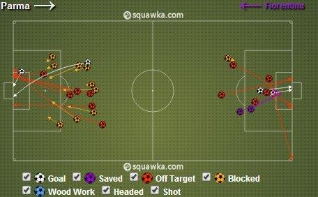 В целом Фиорентина чаще соперника била по воротам, но из пределов штрафной обе команды нанесли по пять ударов, да и то если не считать пенальти в ворота гостей. Также примечательно, что только два удара Виолы были точными, а заодно и результативными, тогда как Парма пять раз попала в створ ворот. Можно сделать вывод, что ставка на дальние удары успеха Фиалкам не принесла. И за это нужно похвалить игроков Пармы, которые редко позволяли соперникам бить из пределов штрафной, а если и позволяли, то успевали блокировать.