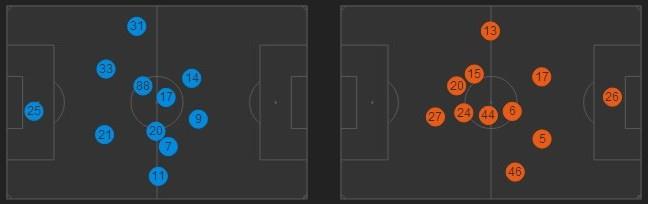 Усредненные позиции игроков также показывают, что Наполи держал оборону не ниже, чем соперник, и к своим воротам не прижимался.