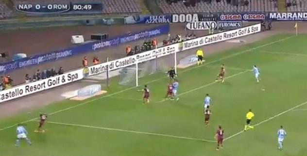 Судя по всему вышеизложенному, ничейным счет стал бы вполне закономерным итогом отчетного поединка, однако одна из немногочисленных ошибок в обороне Ромы привела к победному голу Хосе Кальехона. Что любопытно, гол пришел с левого фланга атаки Наполи, который по ходу игры был в два раза менее активным, чем правый. Майкон до последнего пытался помешать Гуламу навесить, потому к нему претензии минимальны, а вот молодой Романьоли на дальней штанге потерял своего игрока — Хосе Кальехона, который воспользовался ошибкой соперника и головой пробил в девятку. Как видно на скриншоте ниже, Романьоли на дальнем углу вратарской наблюдал только за мячом, но не за соперником, что и позволило Кальехону нанести победный удар.