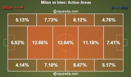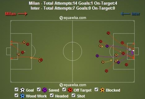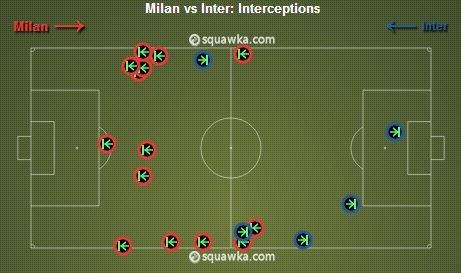 Если рассматривать другие данные, кроме ударов по воротам и пасов, у Милана и Интера во всем (владение мячом, общее количество передач, подачи, угловые, подборы) приблизительное равенство. Тогда за счет чего Милан успешнее действовал на завершающей стадии? Как показывает статистика, Интер слабее соперника и просто очень слабо отыграл в обороне. 5 перехватов против 14, 12 отборов против 17 — и в результате Милан чаще доводил до ума свои атаки.