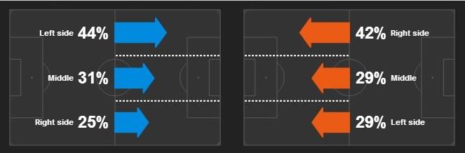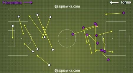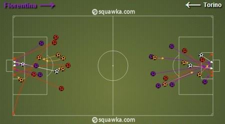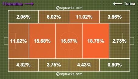 У Фиорентины в атаке был явный перекос в сторону левого фланга, где на чужой половине поля тосканцы оказывались с мячом практически втрое чаще, чем на противоположной бровке.