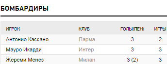 - Массимо Кода (Парма), Грегуар Дефрель (Чезена) и Даниэль Ругани (Эмполи) забили первые голы в Серии А.