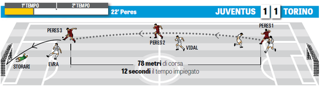 Дело даже не в том, что Торино впервые за десять лет забил в дерби. Гол Бруно Переса вышел, без преувеличения, выдающимся, но Гранатовые в кои-то веки показали тот самый футбол, который позволил им пробиться в еврокубки по итогам прошлого первенства. Грамотная игра в обороне, интересные ходы при контратаках — у Вентуры был четкий план, как противостоять чемпиону, и он почти сработал.