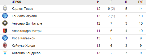 - Лучшая атака: Ювентус (30), Рома (25), Наполи (24)
