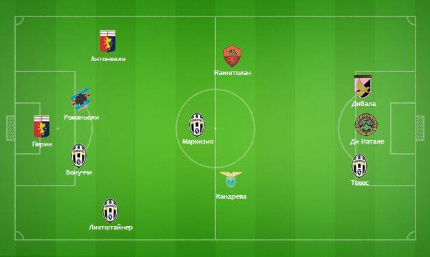 ...гол+пас: 15 — Карлос Тевес (Ювентус), 13 — Пауло Дибала (Палермо), 11 — Антонио Ди Натале (Удинезе), Алессандро Матри (Дженоа), 10 — Гонсало Игуаин (Наполи)