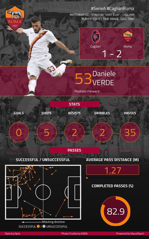 Рома не выигрывала месяц, и многочисленные потери вынудили Руди Гарсию выставить в основе на матч с Кальяри, по сути, дебютанта — 18-летний Даниэле Верди впервые вышел в старте джалло-росси. Юный итальянец занял место травмированного Хуана Итурбе на правом фланге атаки, поначалу слегка тушевался, но затем вошел во вкус. На счету аттакканте два голевых паса, причем второй он отдал другому таланту — 20-летнему Леандро Паредесу, который до воскресенья не забивал в Серии А. Поучаствовал в победной игре и одногодка Верде Антонио Санабрия. Возможно, прозвучит слишком оптимистично, но за будущее Волкам переживать не стоит.