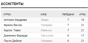 - Процент точных передач: Рома (87%), Ювентус (85%), Наполи, Фиорентина, Интер (по 84%)