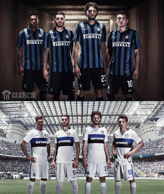Интер, празднуя 25-летний победы в Кубке УЕФА, возвращается к привычной полосатой форме. На выездную футболку возвращается миланский змей, который, однако, не слишком заметен – его силуэт можно обнаружить на сине-черной полосе на груди.