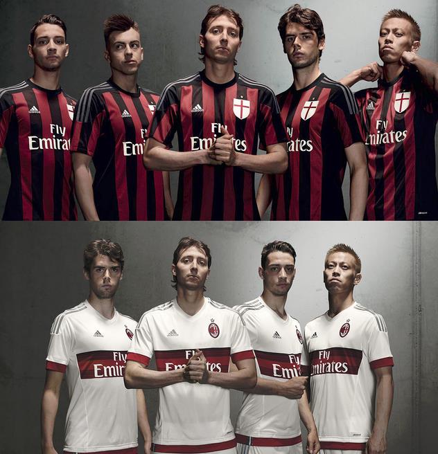 Как и Интер, Милан возвращается к классическому варианту формы, но оставляет на месте клубной эмблемы щит с крестом Святого Георгия.