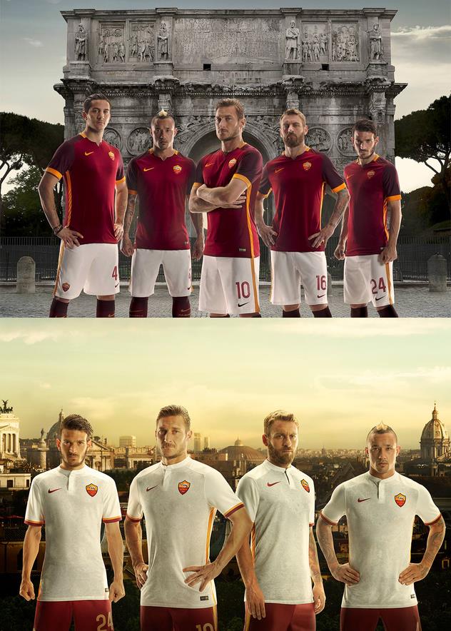 Новинка на форме Ромы – выполненная в серых тонах карта Рима на выездной белой форме.