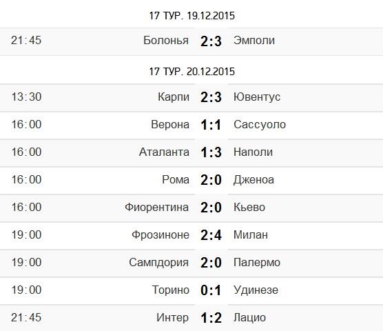 Весь матч можно охарактеризовать одной фразой: «Интер атакует, Лацио — забивает». Хозяева владели мячом, создавали давление на оборону Лациале, но до опасных моментов дело не доходило. На удивление лучший матч в сезоне выдала пара оборонцев римлян Маурисио – Худт, допустив всего одну ошибку за матч, правда, Икарди сполна ей воспользовался. Отлично провел поединок и Лукас Билья, который может перебраться зимой именно в Милан. Аргентинец нейтрализовал Йоветича, а затем и заменившего его Льяича. Сами Орлы осознанно отдали мяч нерадзурри, сделав ставку на контратаки. За весь матч Лацио создал только три момента, два из которых реализованы Кандревой. Заметно оживил игру со скамейки Брозович, но, как известно, один в поле не воин. Лацио добывает такую долгожданную победу и уходит на перерыв на мажорной ноте. Интер проигрывает последний матч года, и теперь опережает Фиорентину с Наполи лишь на одно очко, а Ювентус – на три.