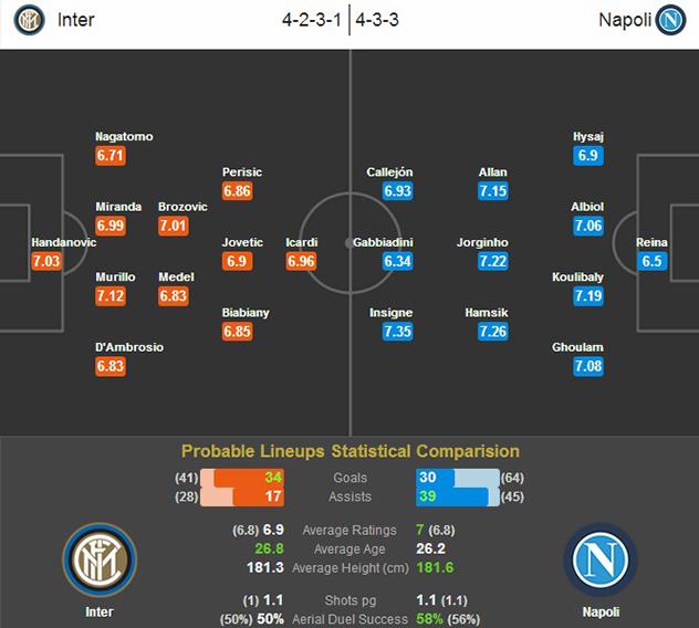 Отличной новостью для поклонников является возвращение после дисквалификаций Миранды и Нагатомо, которые не доиграли матч с Торо, так что Роберто Манчини сможет использовать всю обойму игроков. К тому же, вновь демонстрирует свои голеадорские способности Икарди. Сейчас на счету Мауро 13 голов. Это 4 показатель в лиге, что не сравнить с его прошлогодним результатом, как и показателю Гонсало Игуаина в этом сезоне, но в последнее время прима пунта нерадзурри отличается исправно. В превосходной форме также находится Иван Перишич, на чьем счету 2 голевые и 4 гола в последних 6 встречах.