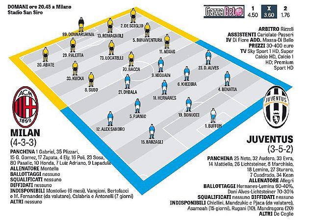 В чем может Ювентус уступить миланцам? Пожалуй, Зебры чувствуют себя уставшими после выезда в Лион, когда почти весь тайм вдесятером отбивались от навала французов. Как и в составе россо-нери, у Старой Синьоры находится не один игрок в лазарете. Джорджо Кьеллини, Квадво Асамоа и Марко Пьяце еще далеко до выхода на поле и она даже не были включены в заявку на матч. Марио Манджукич и Клаудио Маркизио приехали в Милан, но еще не до конца восстановились и вряд ли завтра сыграют на Сан-Сиро.