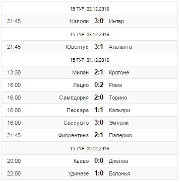 Крушение самолета в Колумбии, которое забрало жизни 71 человека, 19 из которых футболисты бразильского клуба Шапекоэнсе, не могло не отобразиться на общей атмосфере европейского футбола. Все матчи 15-го тура Серии А начинались с минуты молчания в честь погибших. Что же касается непосредственно наполнения матчей итальянского первенства, то зрители могли лицезреть сразу несколько интересных поединков: Дерби делла Капитале, выезд нерадзурри в Неаполь и экзамен для Аталанты Ювентусом. Итак, все матчи тура: